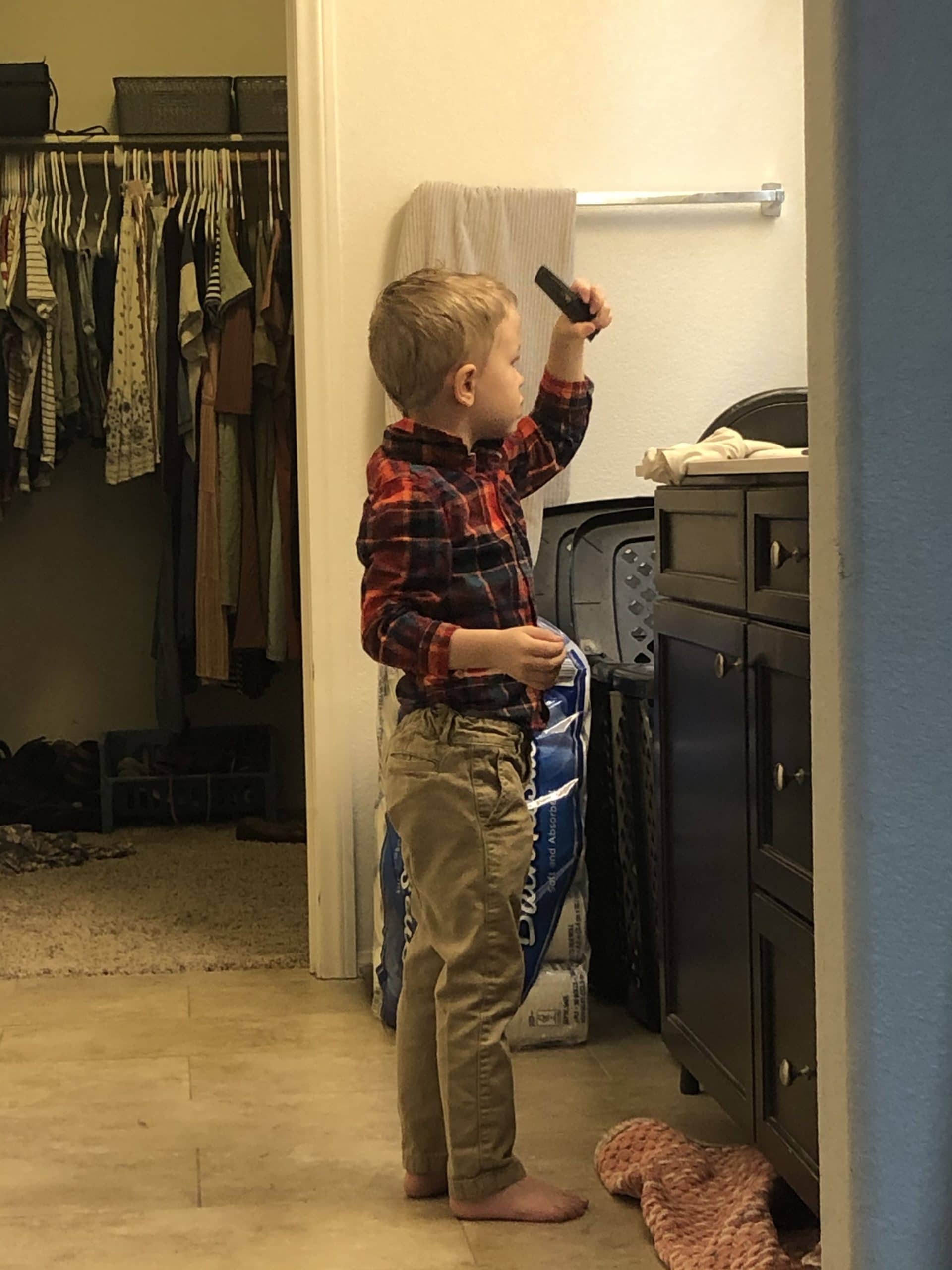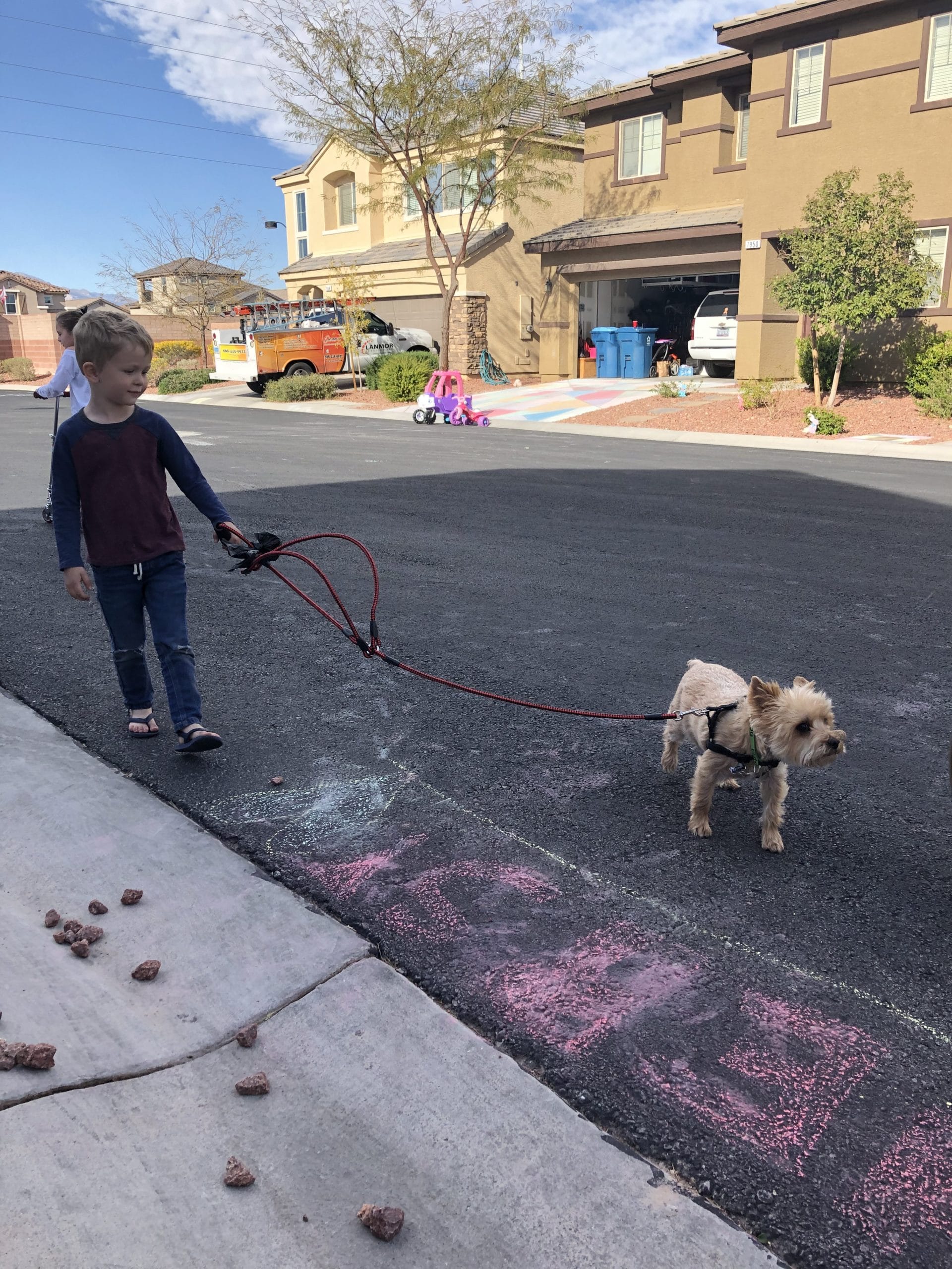Trey also likes doing his preschool work and it’s been fun to sit with him and do work too. I didn’t realize how much he has learned in preschool. He is starting to sound out words and it’s fun for him! Mrs. Kim sets out their preschool lessons and work for the week and we go grab it on Mondays and then he loves to come home and do it all right away! He misses his preschool friends though! We’ve had a few virtual speech lessons with his teacher. He did great for a few minutes until he started yelling “speech is boring!” over and over! He is quite the neighborhood friendly guy. If he sees someone come home he rides down to say hi. We have to remind him to give people their space! He also says when he marries Avery they will have a three story house in Las Vegas. He misses his buddies too.