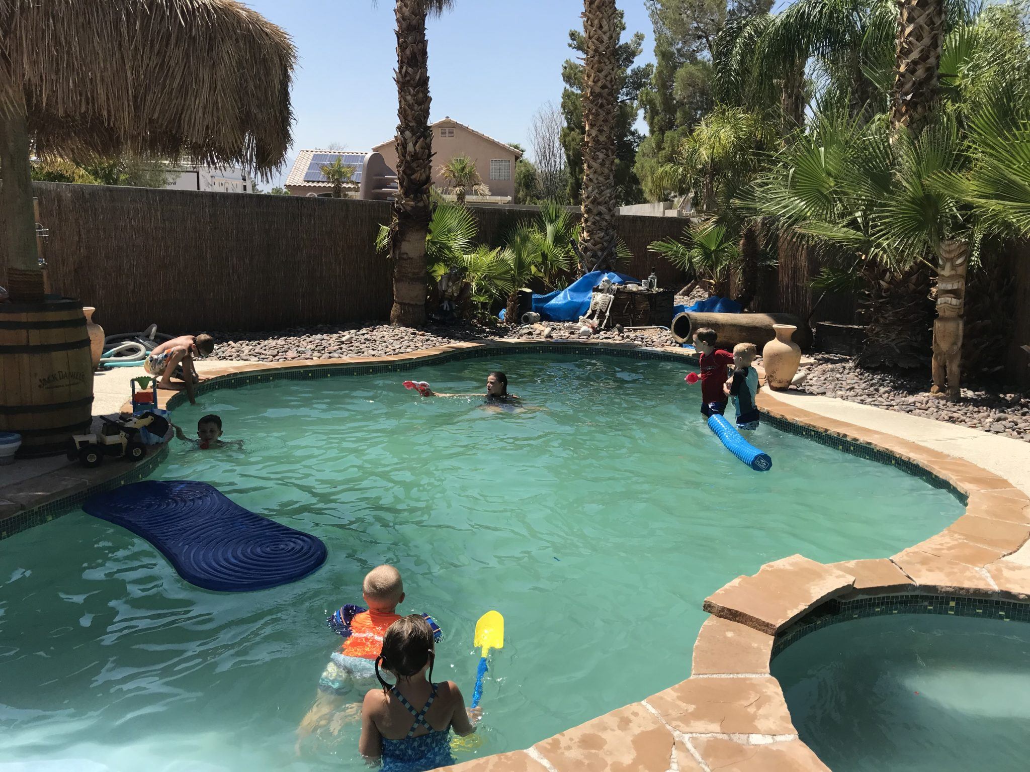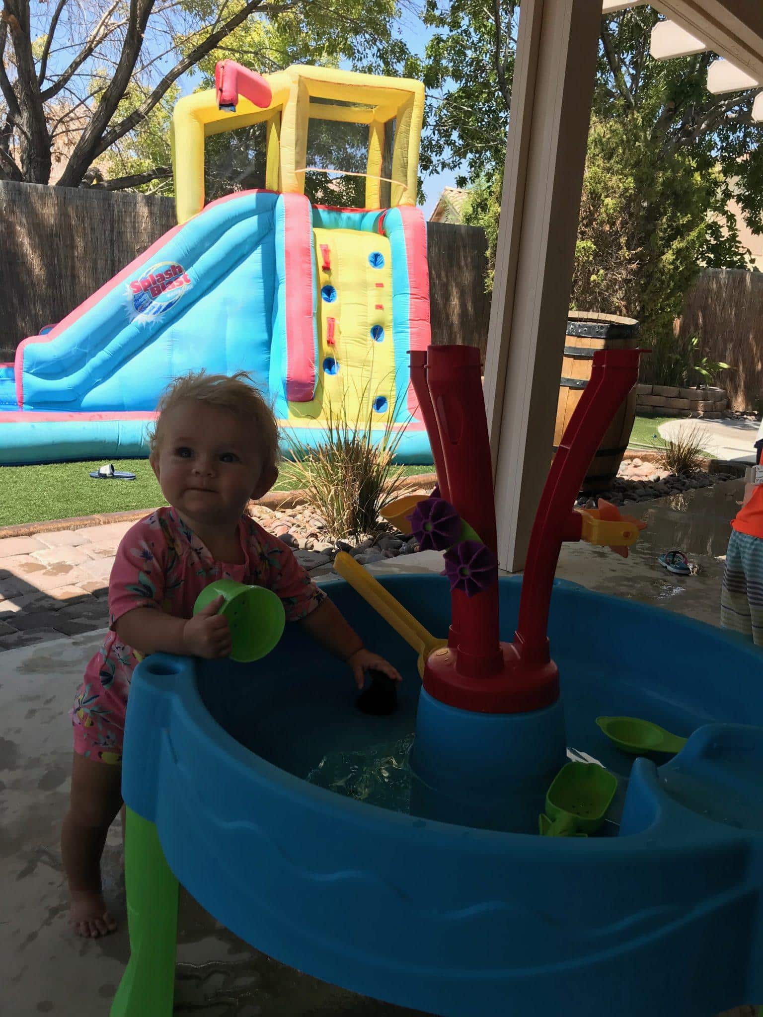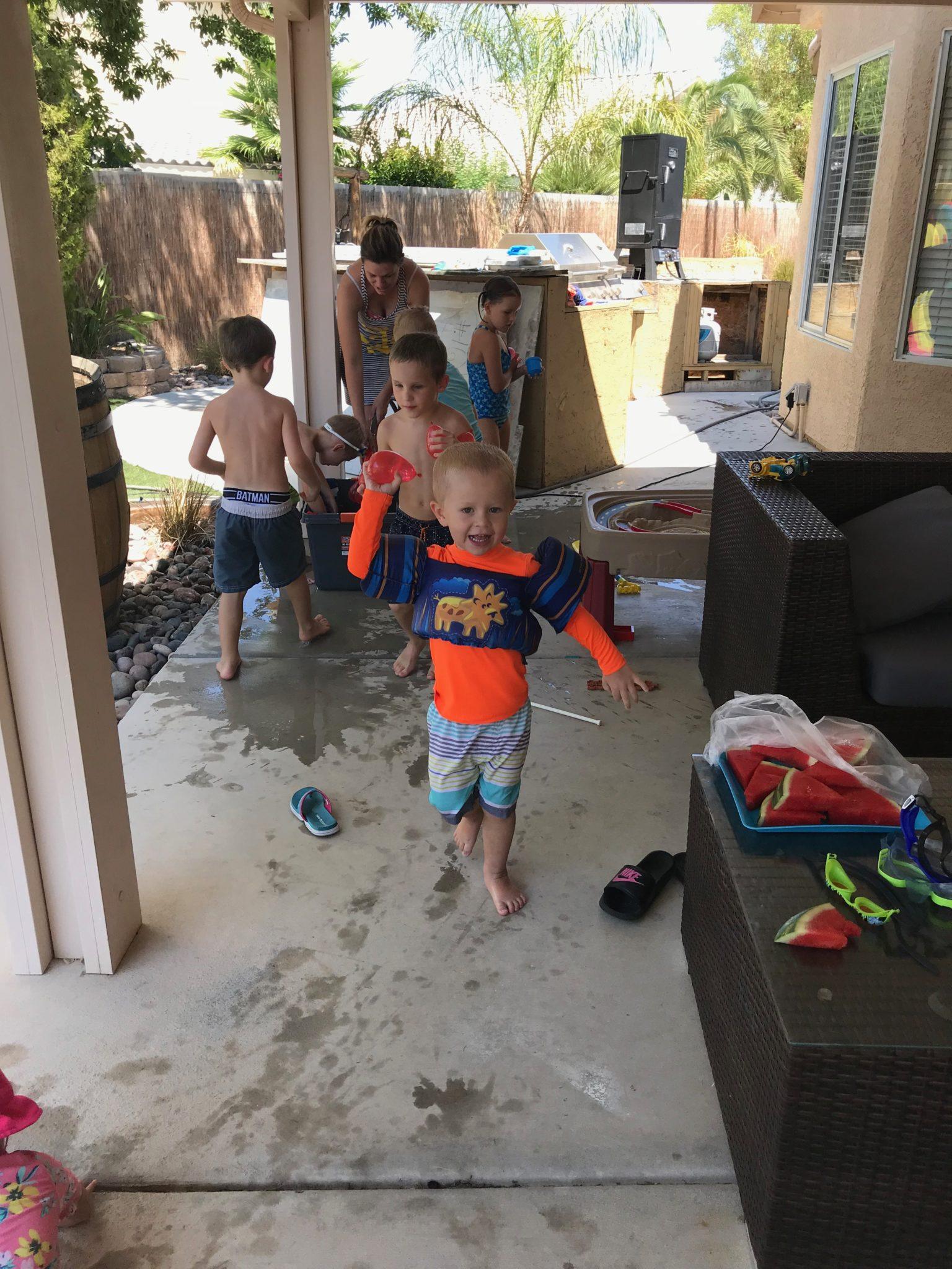 Brandi had us over for a pool party. She had an awesome blow up slide and tons of water balloons.