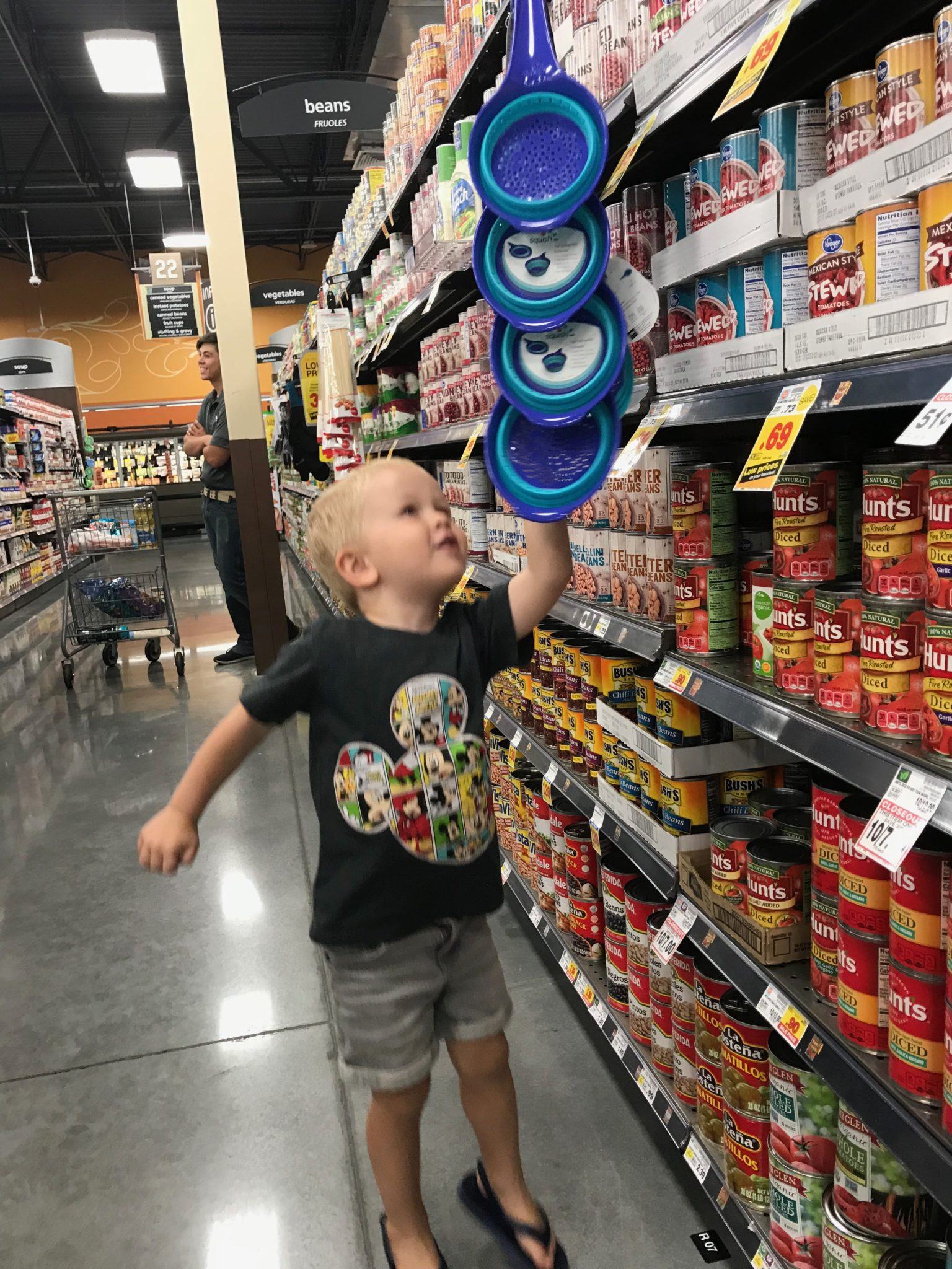 Trey loves to go shopping with me but he’s usually really naughty at the store. He asks every day if we can go to Target mostly because he loves to look at the little toy animals. I usually do give in and go there at least once a week because I like to go there too but once we are there I usually regret it! The other day I was headed to the grocery store and asked if Beau wanted to come with me. He is so good and fun to shop with. Trey overheard and wanted to come and begged and cried and I felt so bad I said he could come too even though I knew it’d probably be bad. He actually did so good for about 5 minutes but after that he was pretty naughty. He runs away. He knocks things off shelves. He hides. He’s super loud. Anyway, I found these pictures that Beau had taken and I didn’t know. They’re funny to me because I can see Trey’s naughty smirk in all of them!