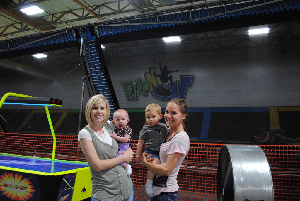 Well one thing I miss about Las Vegas is my best girlfriends! We are all scattered around now and only Heather actually lives there these days. We hadn’t been able to get together for awhile and so hanging out and catching up was so much fun! It was just like the good ‘ol days…except now we have kids! We decided to go to FLIPnOUT so that her little one, Kyan, could jump around.