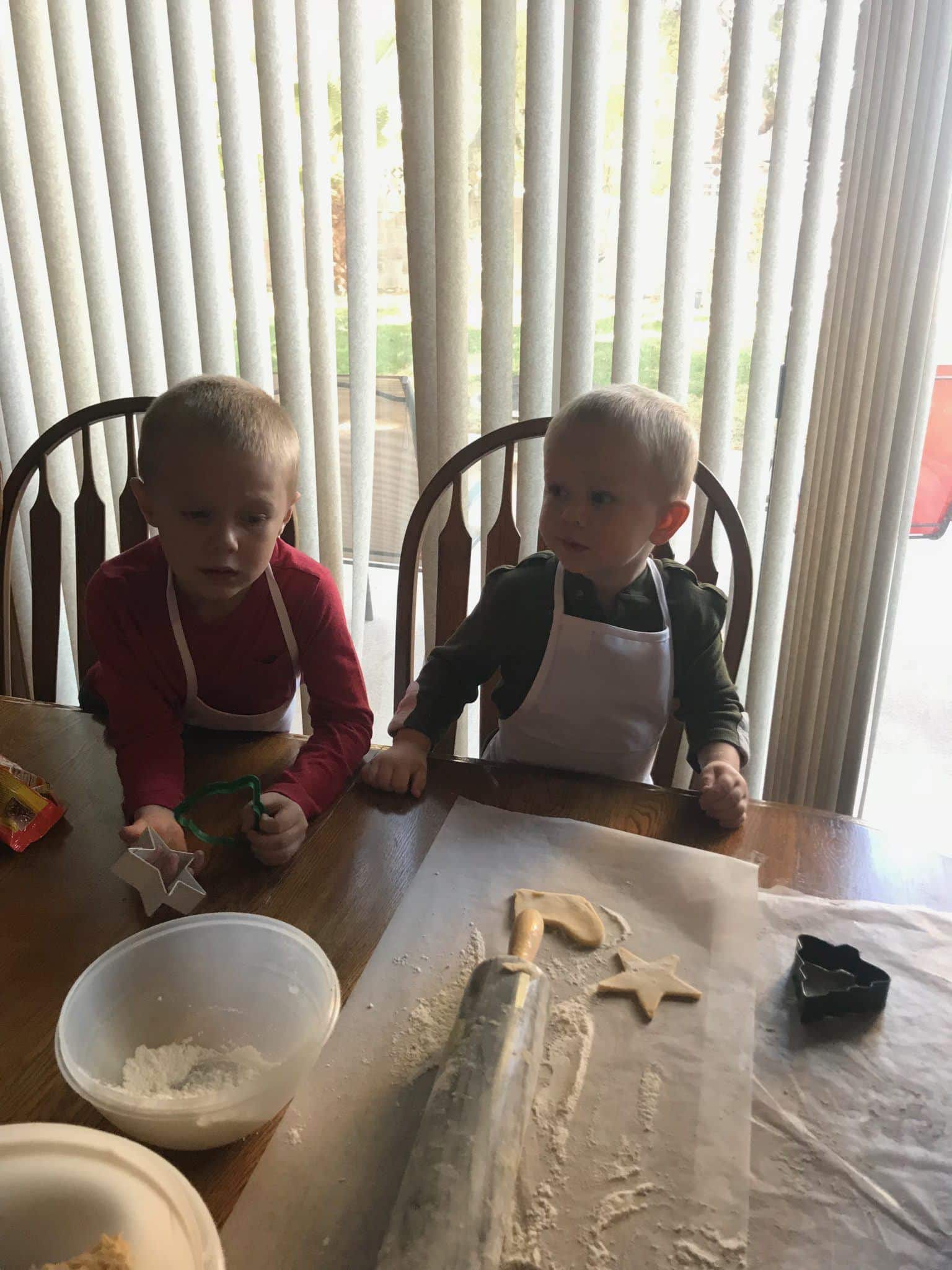 Trey is still crazy. I really wish I could hear what goes on inside of his brain, like what makes him think to do the things he decides to do… he is still so sweet though too. He loves going to church and seeing everyone he loves there. He loves going to Grandma’s houses and he loves to play with his friends. He wanders off though, he gets into everything, he takes things into his own hands most of the time and he is talking better every day. We sure love him even if he keeps us on our toes! I try to get pictures of his crazy shenanigans because one day I am sure we will laugh about it all! Some new things he says are “I not ready for my nap” , “I have a question”, and “why”? He’s in a big boy bunk bed with Beau now. He’s done great. When we were figuring out beds and had the crib up in his room for a bit, I noticed his door open during nap time. I went in there and saw he wasn’t in his bed or hiding in his closet. I didn’t know where he was. I looked upstairs and couldn’t find him. I went back in his room to look under the bed and noticed he was asleep in the crib! He had put all of his books and stuffed animals in there, climbed in and went to sleep. He loves nursery. He also always moves my kitchen rugs so that he can pull the barstools over to the counter and get up in the cupboards. Drives me crazy. I really need to put the barstools in the garage during the day or something… I came down one day and he had all the ingredients for making cookies out on the cupboard.