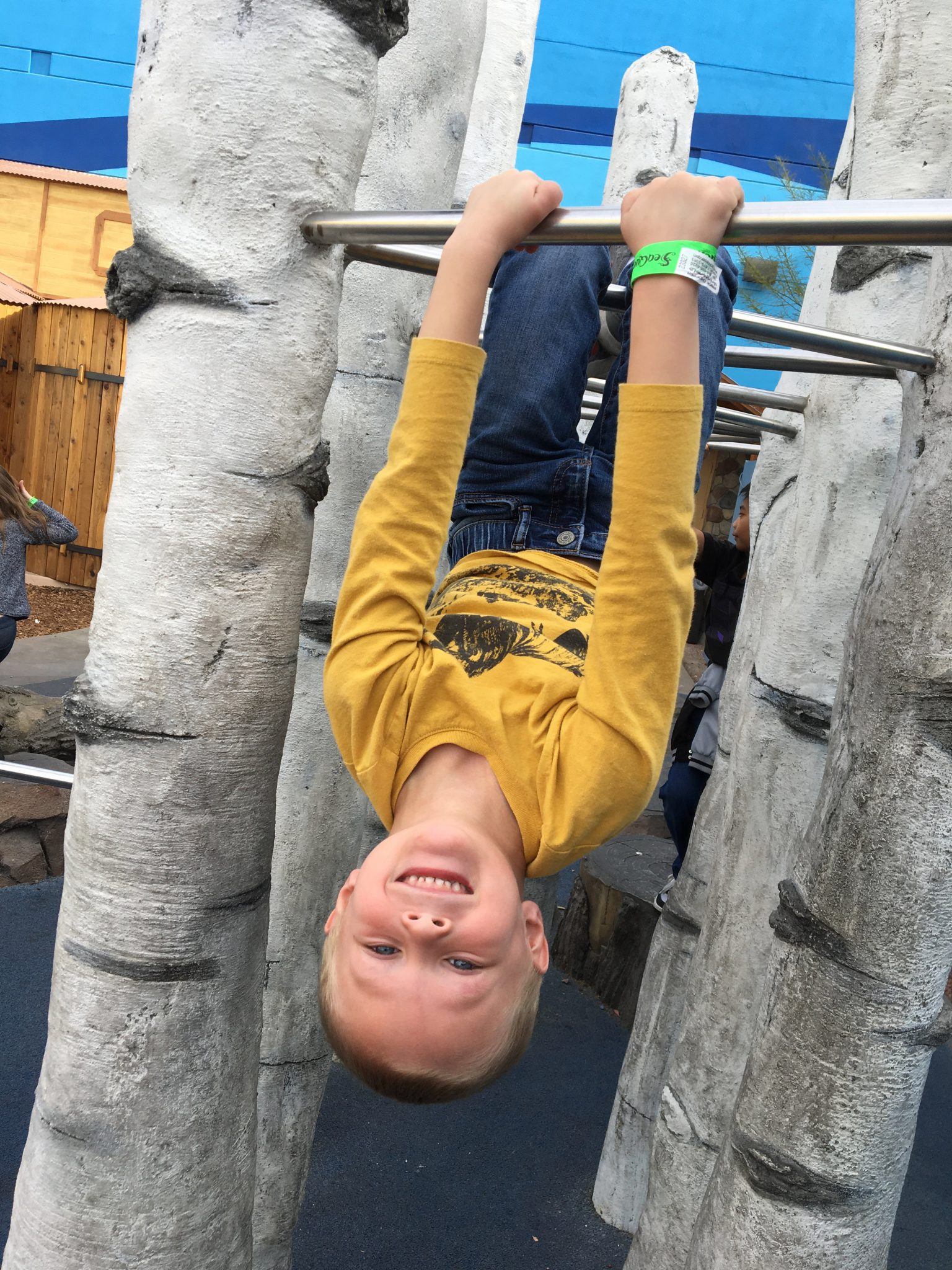I took the kids to SeaQuest and met mom, dad, and Kelli there. The funniest part is when mom and Kelli took the boys into the bird cage. The boys did awesome in there and then said they wanted to feed the birds. I went and paid for that and when I came back mom said I could go in with them and she came out (I didn’t really need to do that-I don’t love birds!) Trey held the cup for a second and the birds came and he fed them but then one landed on my head and flew into Beau’s head so that freaked us both out. The boys got scared and left and so Kelli fed the birds. She had 3 birds perched on her arm eating the food while other birds just kept landing all over me! Beau and Trey also got to touch starfish but wouldn’t touch anything else. And Kayli liked looking at everything but wouldn’t touch anything.