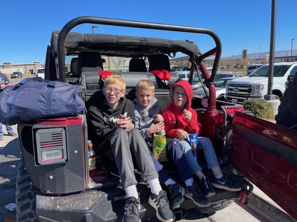 For mom’s 60th Birthday we pulled off a surprise trip! We went to St. George for the weekend. The best part was that we got some of her family to come. She was surprised when we all showed up to dinner with her and dad and then to see David and Kayryn show up later at the house and then again later that night when Scott and Cindy showed up. We did Parade of Homes, ate good food and had her birthday dinner at a Mexican Restaurant with even more family. It was a fun weekend! Kenny took the jeep and lots of the boys went off-roading. The jeep broke down and it took almost two months to fix!
