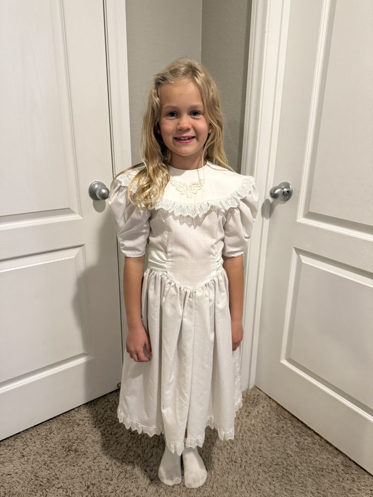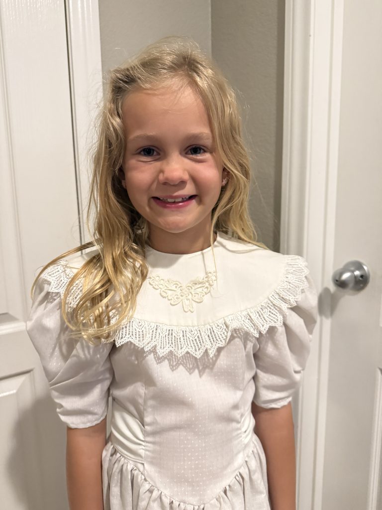 We bought Sami’s baptism dress while we were in Utah and so when we got home we put her in my baptism dress that my Grandma Varney made for me.