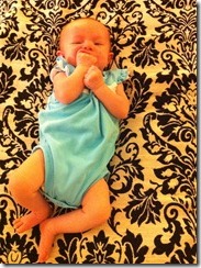 5. She loves her fists. She loves looking at them and she loves trying to eat them!
