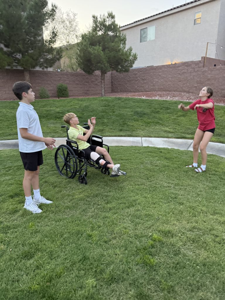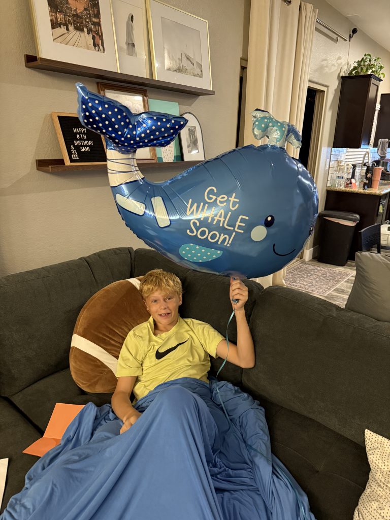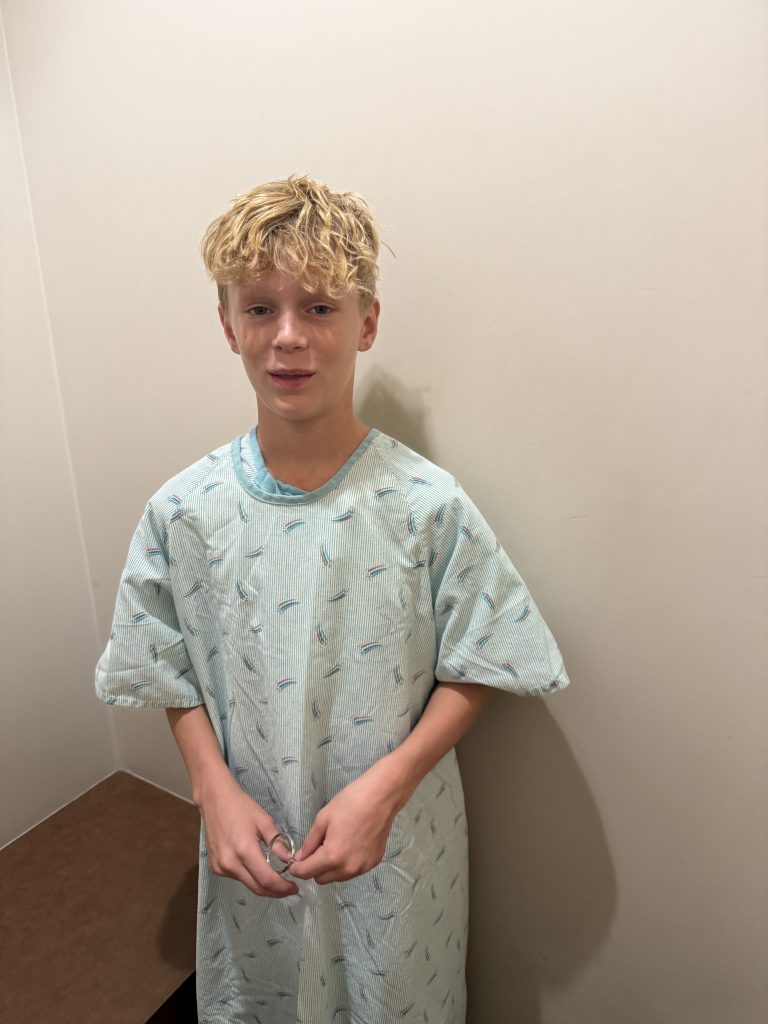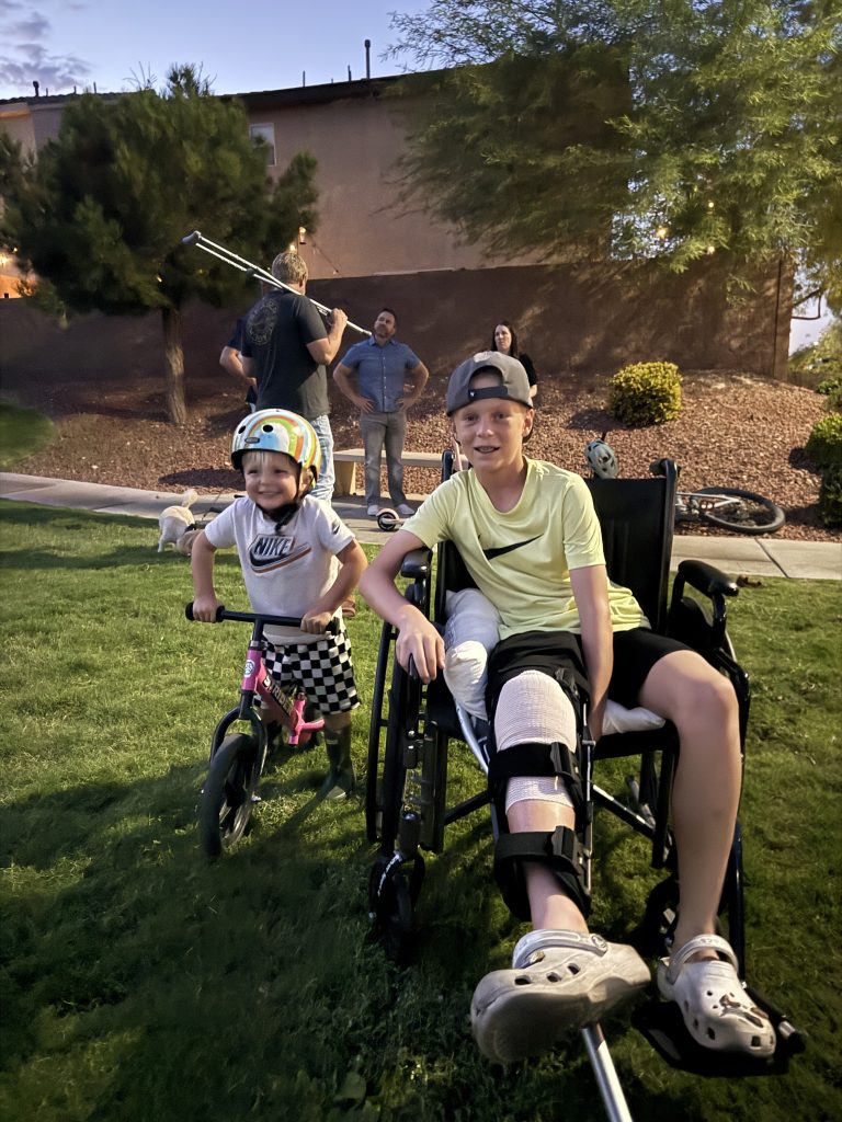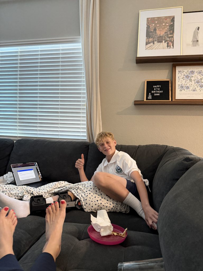 After Beau’s MRI right before his birthday, we found out that he needed to have knee surgery ASAP. His knee pain for the past two years was most likely not as much from the bone spur but more from some dead bone! The doctor said that needed to be fixed before it fell off. He would need to go in and screw the dead bone back in place, drill holes in the bone to stimulate blood flow and healing and he would also take the bone spur off. This would require Beau to be on crutches and a full leg brace for 6 weeks, physical therapy after 6 weeks and no sports or activities for 3-4 months. He had just started a new hockey season, just made the school Varsity football team and was about to try out for club volleyball so this wasn’t the news we wanted but we were also anxious to get it done and get him healing. He had surgery on September 11. He was out of it that night but by the next day was feeling good and has done so well with crutches or hopping around the house. He had lots of visitors, treats, and people checking in on him. I have to take him to school and pick him up and he has buddies in each class that help him leave early to get to his next class before the rush of kids, they carry his backpack and open the doors for him. He has been in good spirits too! He got to play in one football game where Coach Hubbard said the ball was going to Beau lots and he was playing the whole game since he’d be out the whole season. He was so sad to hear that he wouldn’t have Beau out there playing! Beau has been to the games on crutches cheering on his team! He played in one hockey game before surgery and will go to as many of those games as he can to cheer on that team as well. Impact Volleyball Club, who Kayli plays for and they know us well, took Beau for their 14U team along with Owen and Bennett so that will be fun. They knew about his surgery and that he would be out the first month and a half. He plans on going to those practices and watching but learning all that he can to be ready to jump in when the doctor clears him (hopefully in December!)