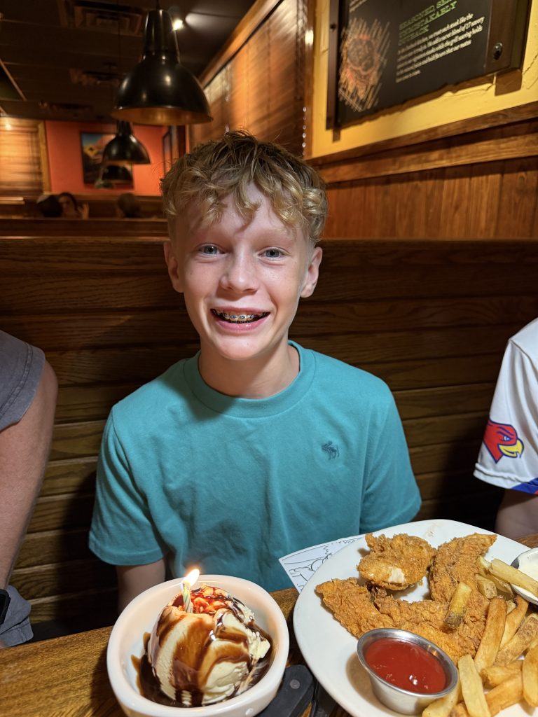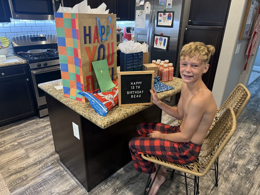 Beau turned 13 the day before school started so we spent the weekend celebrating! He had an MRI on Friday to see what was going on in his knee and then in keeping with tradition we played street hockey with his buddies. We also had pizza and treats and played volleyball and indoor soccer. Saturday we had a pool party and went to Outback. Sunday was a little more boring for him but he was a good sport!