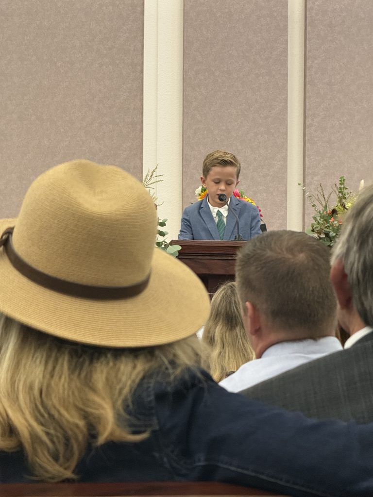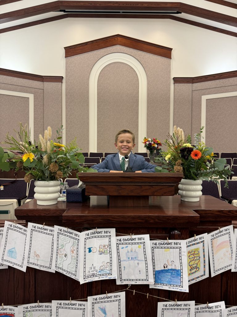 Trey was asked to conduct at the Stake Primary Devotional and it was the cutest thing ever. He was so confident and calm and did a great job. He was busy with lots of introductions of speakers and musical numbers. “Good evening and welcome to the Skye Canyon Stake Primary Devotional. My name is Trey Eliason from the Eagle Canyon Ward and I was asked to conduct this meeting under the direction of the Stake Primary Presidency…” I loved it so much!