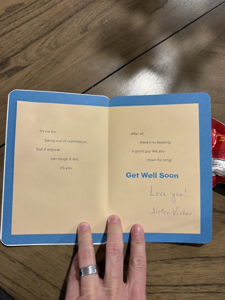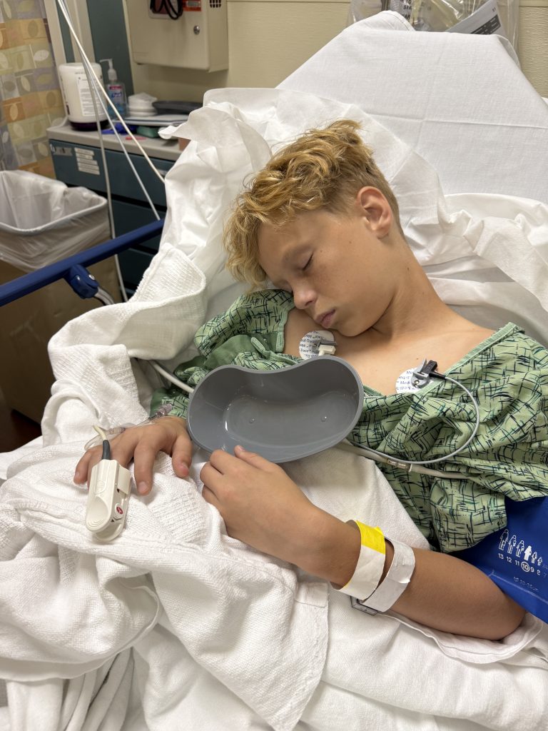 During Beau’s surgery there was a Fall Sports Pep Rally at the school. Sami and Trey were a part of it with their teams and when they introduced Beau’s team Coach Hubbard called Beau’s name and said that he wasn’t there because he was having knee surgery right then but that he was still a part of the team. One of the teachers told me that the school all cheered for him.