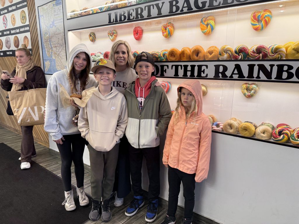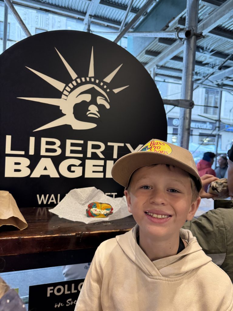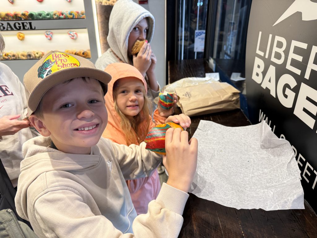We got off the ferry at Battery Park and the kids were mesmerized by the skyscrapers. Our first stop in Manhattan was Liberty Bagels!