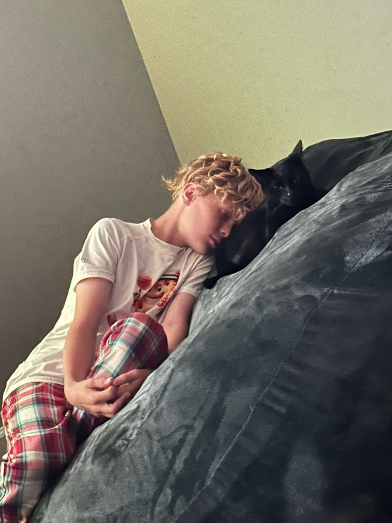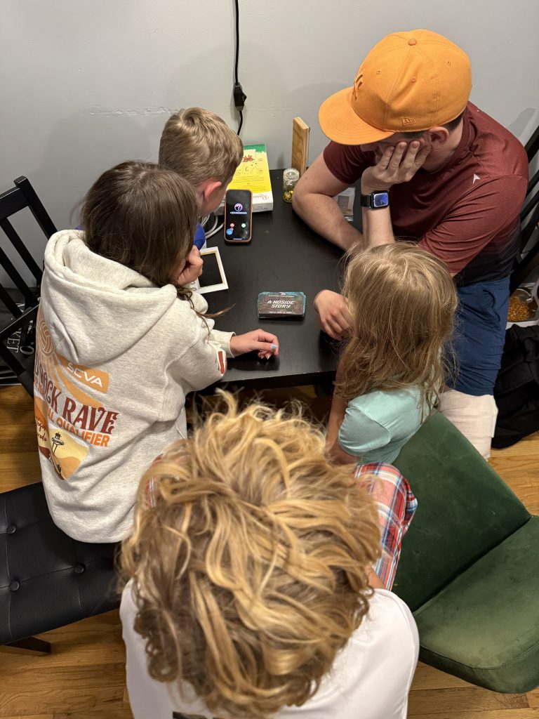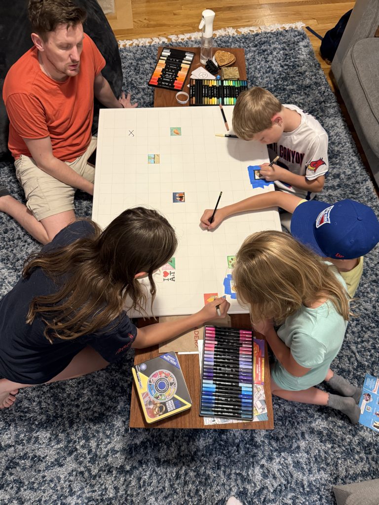 Taylor and Addison had us each paint a square on their visitor board so that was fun to do one of the nights. Also, when the kids heard that Taylor and Addison had a cat they were a little worried about staying there but by the end of the trip most of them were best friends with that cat!