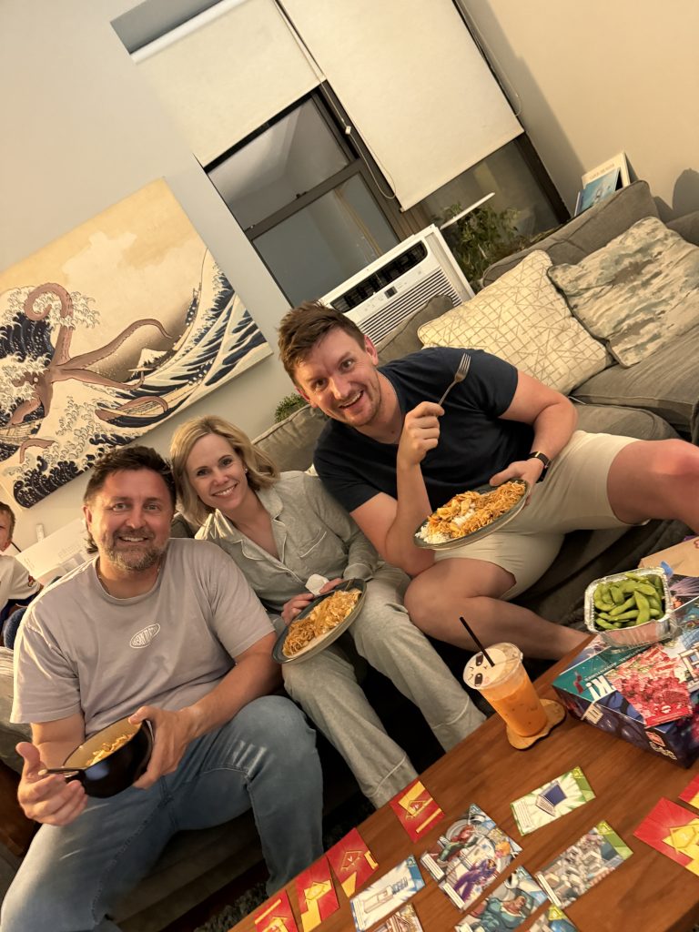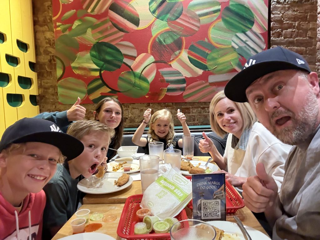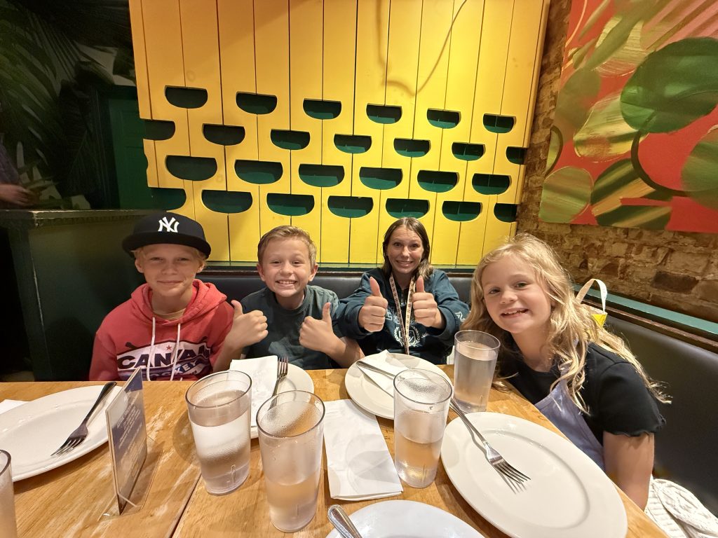 Our last night at Taylor’s was so much fun. Kenny had gone to the bodega right outside of Taylor’s building every night to buy treats and sometimes Taylor would disappear and come back a few minutes later with popcorn he had just bought at the Bodega too. The kids liked going up to the roof and checking out the view. The kids loved playing more Unlock games and hanging with the cat and the adults loved ordering Thai food and watching more NYC themed movies. Taylor and Addison were the best hosts and we seriously had the best time visiting them!