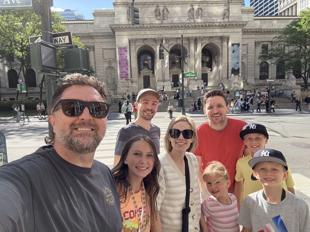 We finally made a New York City trip happen! Taylor has lived out there for a long time and we’ve never been able to get out there but we were determined to make it happen this summer. We actually left the night before the last day of school so the kids missed their last day but we had a few days around Memorial Day before Kayli had to be back for school things. We were so lucky to stay with Taylor now that he has his own place with extra bedrooms. Part of the fun of this trip was just hanging out at his place at night playing Unlock games and watching movies that take place in NYC like Enchanted, National Treasure and In the Heights (Taylor lives in the Heights!)