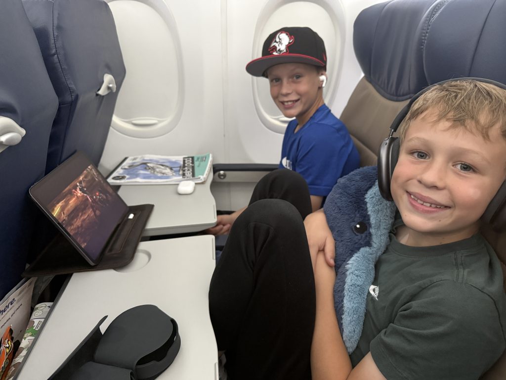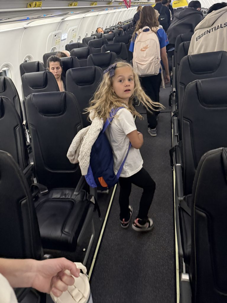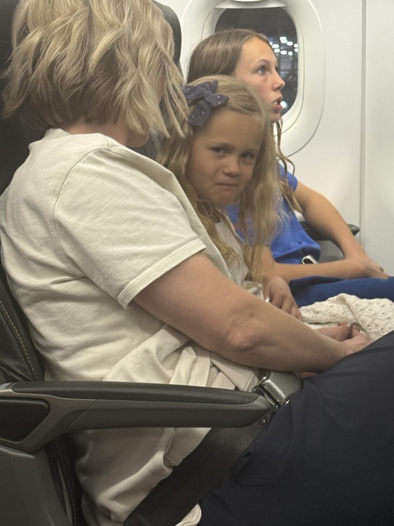 This was Sami’s first plane ride! She didn’t love it. And as soon as we got off the plane and to a restaurant for food- she puked.