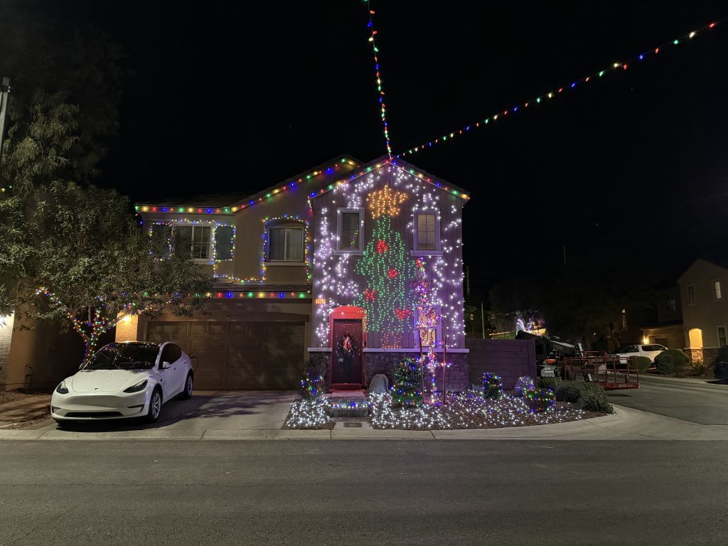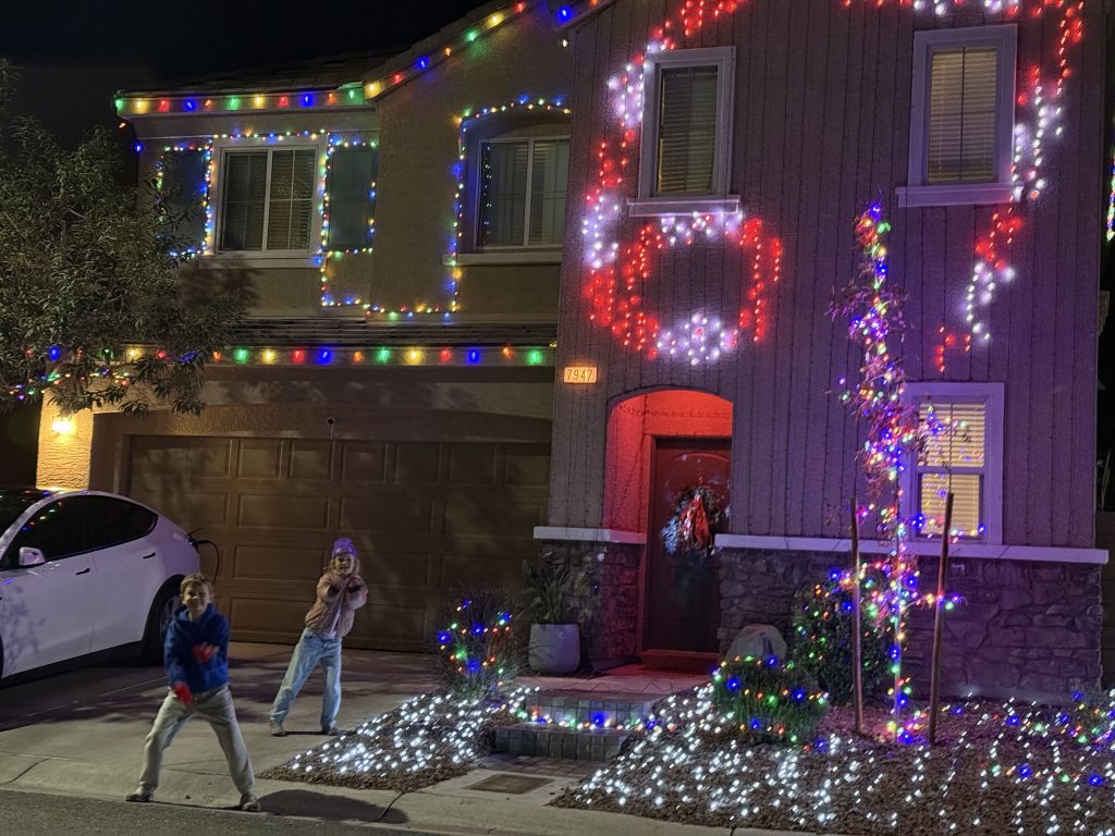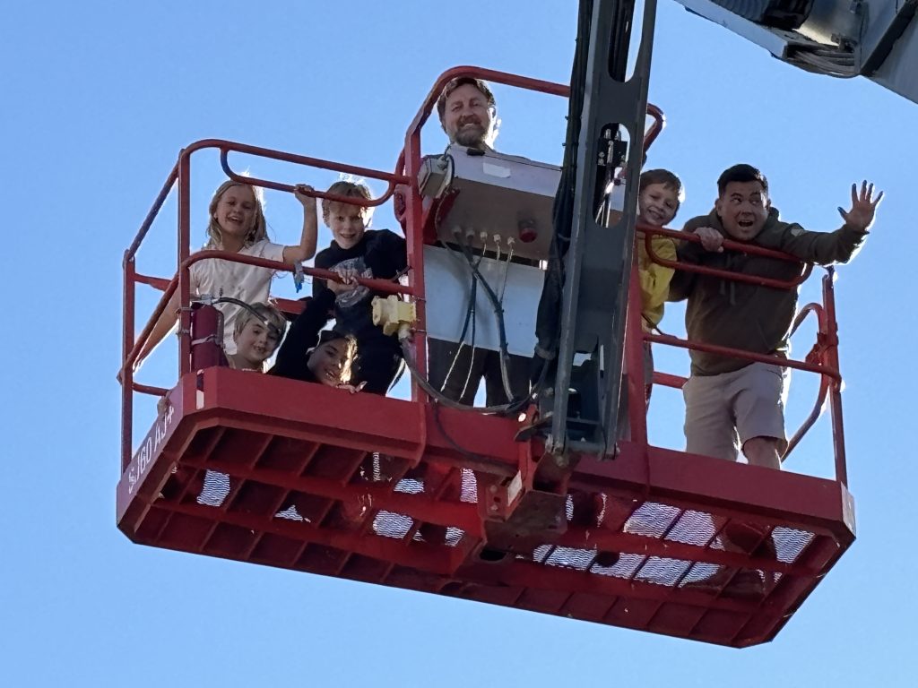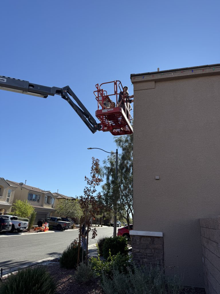 Traditional lift weekend! Kenny rents a lift and the whole street goes in on paying for it and putting up lights! We did Adelle and Tristan’s lights and other neighbors help others who need help put lights up too. All weekend you hear the lift driving up and down the street but it’s become a fun tradition!