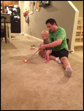 Beau is almost 11 months and he has walking down. It’s great. Him and Kayli are little buddies now. He follows her around. And he loves golf. If he doesn’t have his play fork in his hand, then he has his golf clubs. Funny boy. Can’t believe he is almost 1!