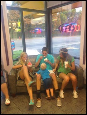 Rachel and I were feeling pretty accomplished that we survived the road trip with these four. They actually did pretty good! Until Emma threw up when we were stopped for construction and couldn’t go anywhere…good times.